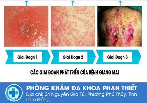 Các biểu hiện của bệnh giang mai diễn biến theo 3 giai đoạn bao gồm: