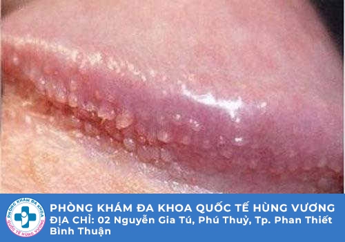♦ Các nốt mọc thành khoảng từ 1 đến 2 hàng ở quanh phần đầu dương vật