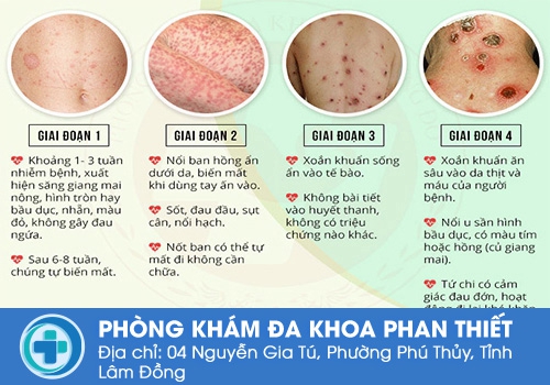 Bệnh giang mai gồm 4 giai đoạn phát triển, biểu hiện bệnh giang mai ở mỗi giai đoạn cũng sẽ có những đặc điểm đặc trưng riêng như: