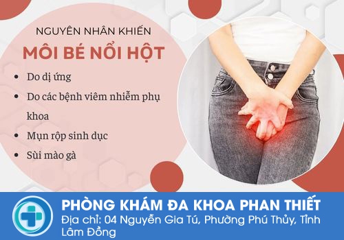 Môi bé nổi hột do các bệnh viêm nhiễm phụ khoa: bệnh chủ yếu do nhiễm nấm Candida, trichomonas…gây nên do quan hệ tình dục không an toàn, vệ sinh vùng kín không sạch sẽ, các thủ thuật ngoại khoa không đảm bảo…gây ra tình trạng viêm âm hộ - âm đạo. Các loại vi khuẩn có hại tấn công, ngoài việc gây sưng tấy đỏ, ra khí hư, xuất hiện mùi hôi ở “cô bé” còn khiến vùng kín nổi mụn nhỏ âm đạo.