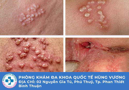 ➣ Xuất hiện những mụn nước nhỏ hay những nốt nhú xung quanh cơ quan sinh dục (ở nữ giới là môi lớn, môi nhỏ, âm hộ. Ở nam giới là quy đầu, bao quy đầu và phần bìu)