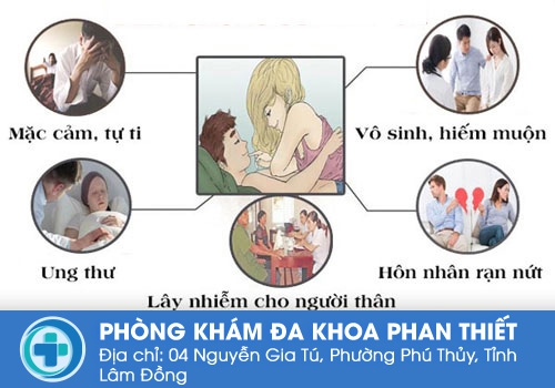 Gây tổn thương cơ quan sinh sản, có thể bị vô sinh, khó có con khi bị mụn sinh dục. Thậm chí còn lây lan sang bạn tình hoặc vợ (chưa kể nếu người vợ mang thai có thể ảnh hưởng đến thai nhi).