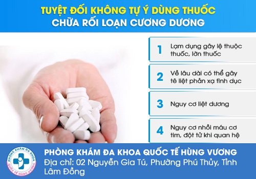 Các loại thuốc không rõ nguồn gốc chưa được khoa học chứng minh về hiệu quả và độ an toàn, mà ngược lại, không ít trường hợp bệnh nhân phải nhập viện cấp cứu do tự chữa rối loạn cương dương tại nhà.