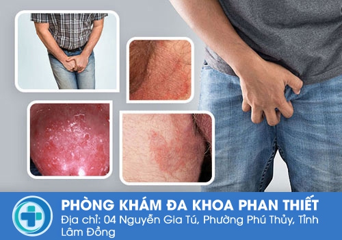 • Hiện tượng ngứa ngáy xuất hiện ở bìu tinh hoàn, dương vật, vùng bẹn, vùng mu và dần lây sang khắp các vùng này. Biểu hiện đặc trưng là mẩn đỏ như phát ban, xuất hiện mụn nước, vảy trắng gây ngứa ngáy, khi gãi ngứa có bột trắng vướng ở móng tay,...