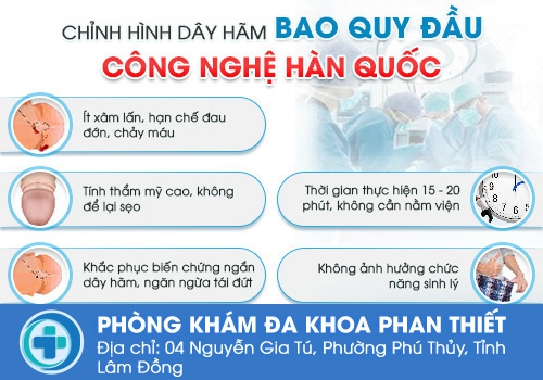 Phòng Khám Đa Khoa Quốc Tế Hùng Vương số 02 Nguyễn Gia Tú, Khu phố 14, Thành phố Phan Thiết, Bình Thuận – Tự hào là địa chỉ chuyên điều trị dây hãm bao quy đầu chất lượng cao. Sự Uy tín – Chuyên nghiệp – Tận tâm đã giúp phòng khám vinh dự được đông đảo nam giới tin tưởng lựa chọn. Với quy trình nhanh gọn, các bác sĩ chuyên khoa giỏi cùng cơ sở vật chất hiện đại, máy móc, thiết bị y tế tiên tiến cho kết quả nhanh, chính xác.