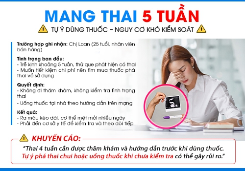 Ở tuần thứ 5, thai thường còn nhỏ và trong nhiều trường hợp có thể áp dụng phương pháp phá thai bằng thuốc. Tuy nhiên, điều này chỉ an toàn khi đáp ứng đủ các điều kiện cần thiết.
