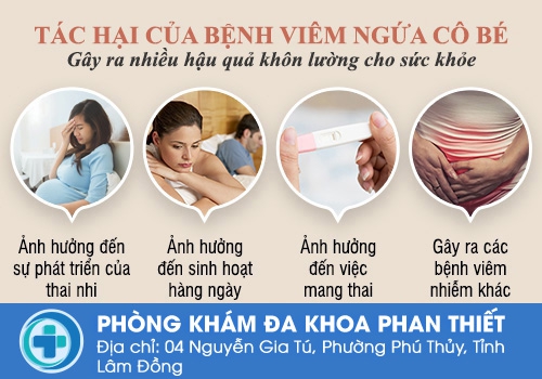 Gây ra các bệnh viêm nhiễm khác: Viêm âm đạo nếu không kịp thời điều trị dễ dẫn đến các bệnh viêm nhiễm khác như: viêm đường tiết niệu, viêm vùng chậu, viêm niêm mạc tử cung. Bên cạnh đó, khi da hoặc niêm mạc trực tiếp hoặc gián tiếp tiếp xúc với mầm bệnh dễ lây nhiễm các bệnh lây truyền qua đường tình dục như: mụn rộp sinh dục, bệnh lậu, giang mai, nấm…