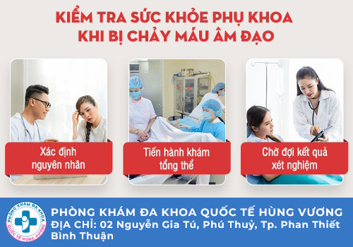Nếu bạn lựa chọn khám sức khỏe phụ khoa do bị chảy máu âm đạo sau khi quan hệ, bác sĩ tại Phòng Khám Đa Khoa Quốc Tế Hùng Vương sẽ tiến hành kiểm tra theo những bước sau: