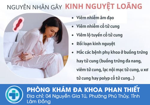 + Viêm nhiễm cổ tử cung: Ngoài triệu chứng máu kinh loãng, bệnh còn có biểu hiện như khí hư ra nhiều có màu vàng, mùi hôi tanh kèm theo dịch chất dịch đặc và nhày, tạo cảm giác khó chịu, bất tiện cho chị em phụ nữ.