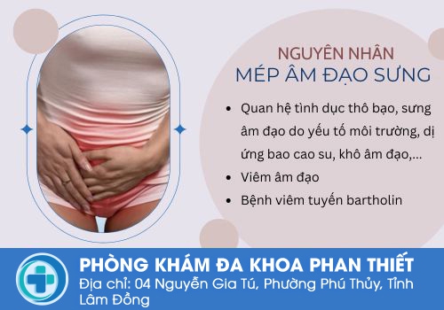 Đối với tình trạng sưng mép âm đạo, các bác sĩ chuyên khoa tại Phòng Khám Đa Khoa Quốc Tế Hùng Vương cho biết, việc triệu chứng này xuất hiện sẽ có liên quan đến một số vấn đề ở sức khỏe nữ giới bao gồm: