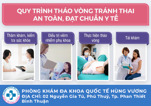 Phòng Khám Đa Khoa Quốc Tế Hùng Vương tại 02 Nguyễn Gia Tú, Khu phố 14, Thành phố Phan Thiết, Bình Thuận là địa chỉ đáng tin cậy trong việc xử lí các vấn đề phụ khoa trong đó có tháo vòng tránh thai, để mang đến cho chị em một cuộc sống hạnh phúc trọn vẹn. Chỉ cần gọi 0252.7303.888 hay nhấp vào khung chat, chị em có ngay mã khám ưu tiên tháo vòng tránh thai